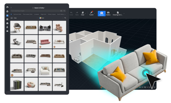 Odkryj ponad milion modeli 3D w bibliotekach Coohom. Znajdziesz tu szeroki wybór mebli, sprzętu AGD i innych elementów do projektowania wnętrz.