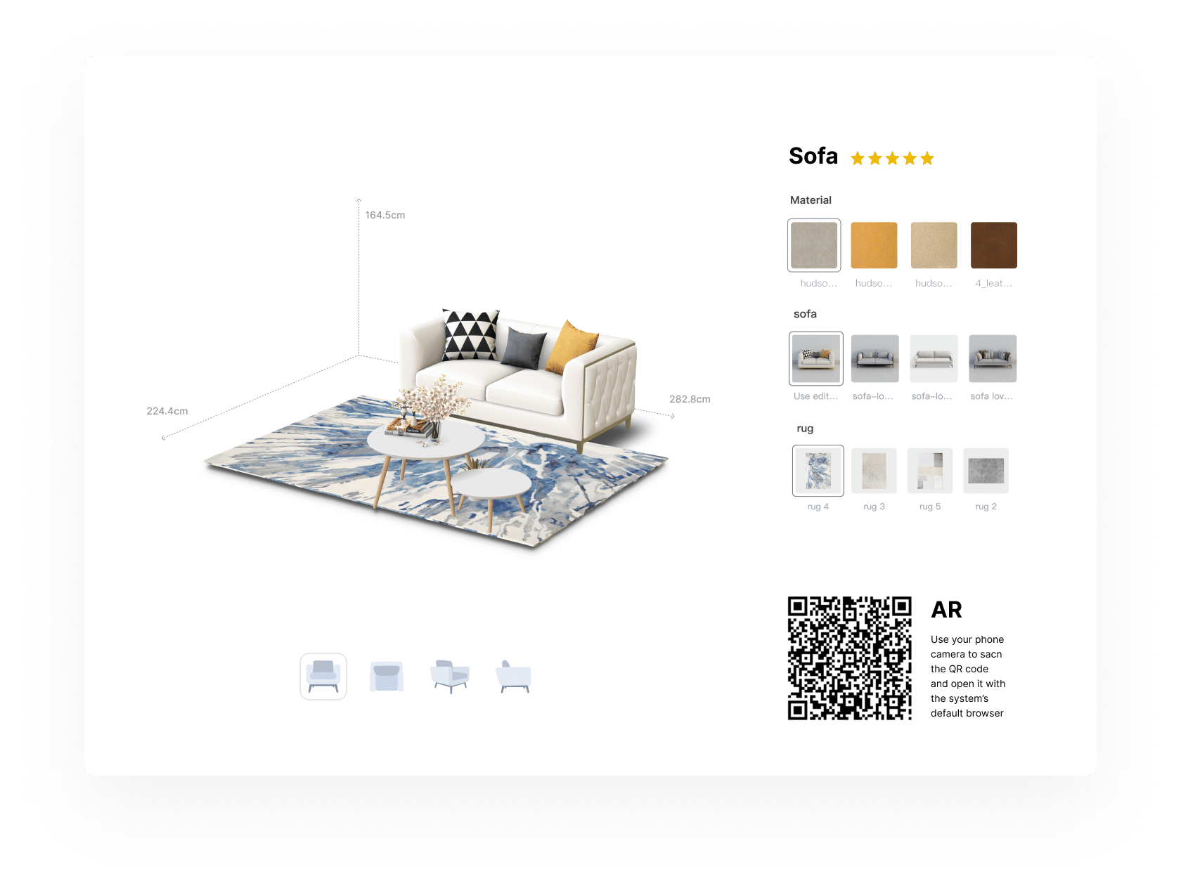 - Wykorzystaj konfigurator mebli 3D, aby zwiększyć sprzedaż. Łatwo twórz, rozpowszechniaj i zarządzaj wizualizacjami swoich produktów. Prezentuj swoją ofertę w rozszerzonej rzeczywistości.